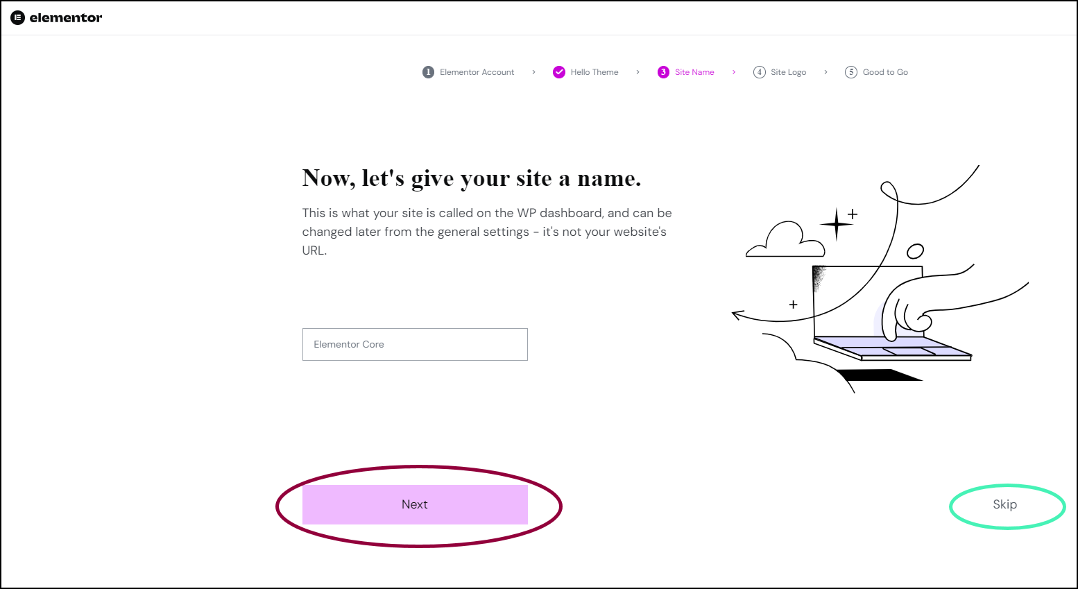 - If you want to change your site name, enter the new name in the text box and click Next.