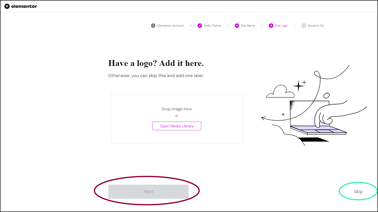 - If you have a logo, drag the image to the image box or click Open Media Library to use a logo from the Media library.