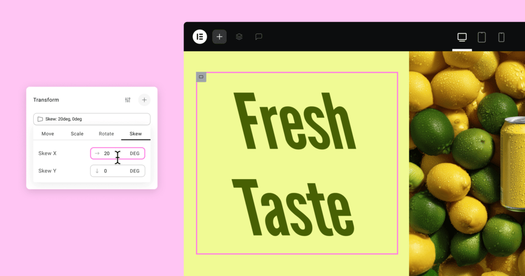 Editor V4’s new Transform controls let you visually apply CSS transforms to any element. With Transform, you can: