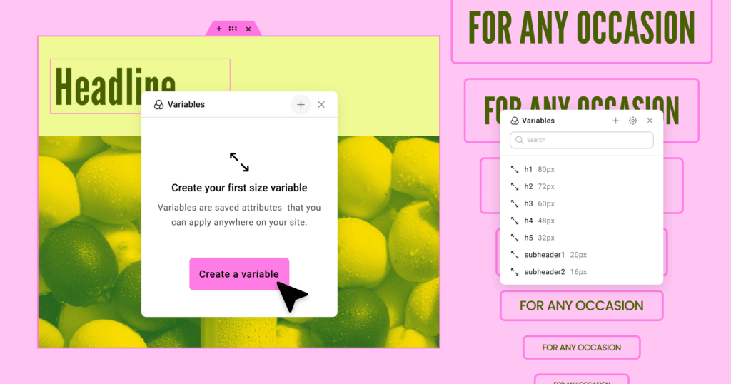 Instead of typing 12px manually into each of your paragraphs, you create a “text-size” Variable. You then connect that Variable across your text elements and later, if you decide to increase it to 16px, you simply update the Variable once and every connected element updates instantly.