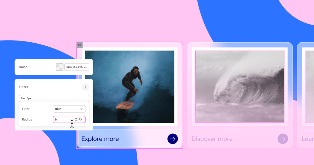Just like with Filters, you can choose from 9 different effects like blur, brightness, grayscale, or drop shadow, stack multiple Backdrop Filters and apply them into your V4 classes.Tip: To use Backdrop Filters effectively, the element must have a transparent background.