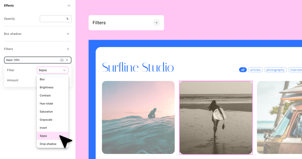 Elementor 3.31 brings full support for Filters directly into Editor V4. These filters empower you to enhance your site’s visual aesthetics without writing any code.
