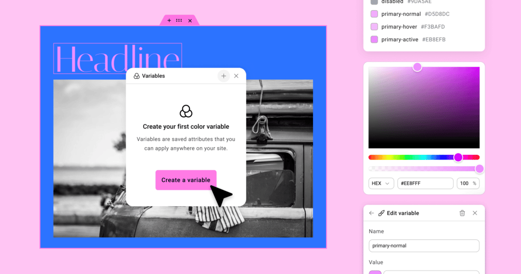 Designing at scale becomes significantly easier with the introduction of Variables. Rather than assigning styles manually element by element, Variables allow you to define once and apply consistently across your site.