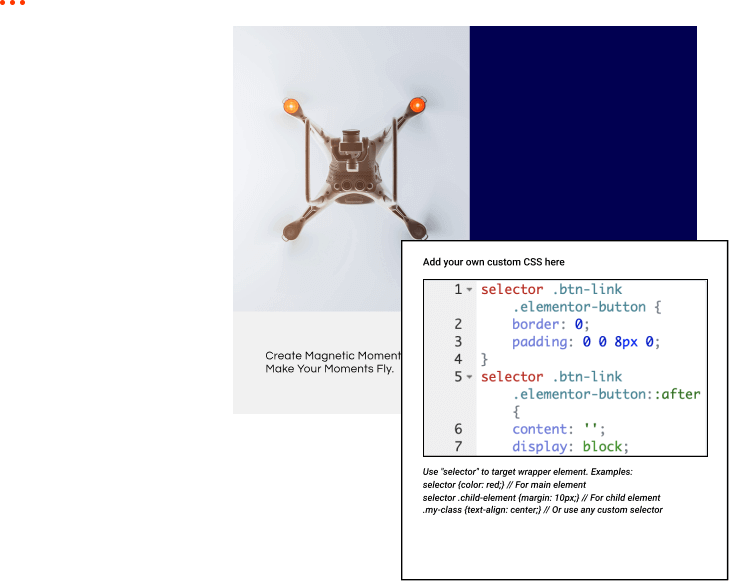 Open source is one of our key principles, so you always have full access to our source code. Expand Elementor’s abilities by programming your own functionalities, and use custom CSS to bring your design vision to life.