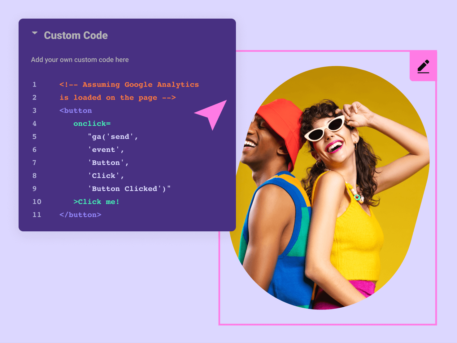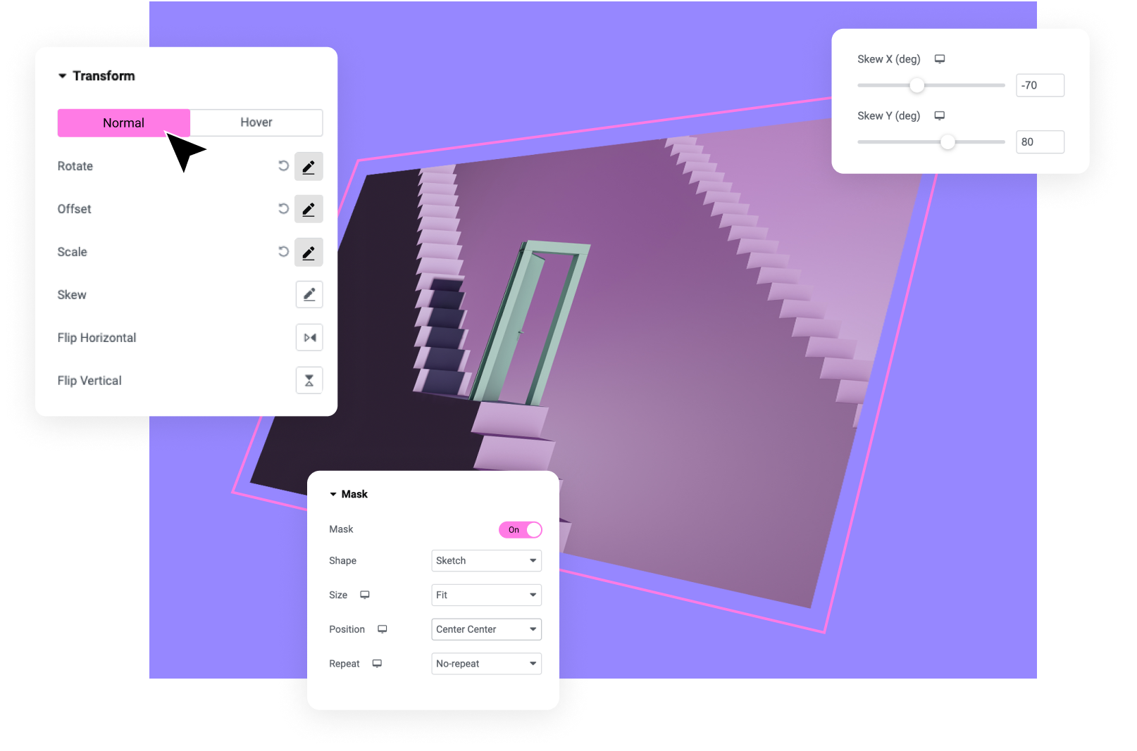 Make your landing pages stand out by turning elements like images into custom shapes using masks, or transform them by rotating, skewing, scaling, and more.