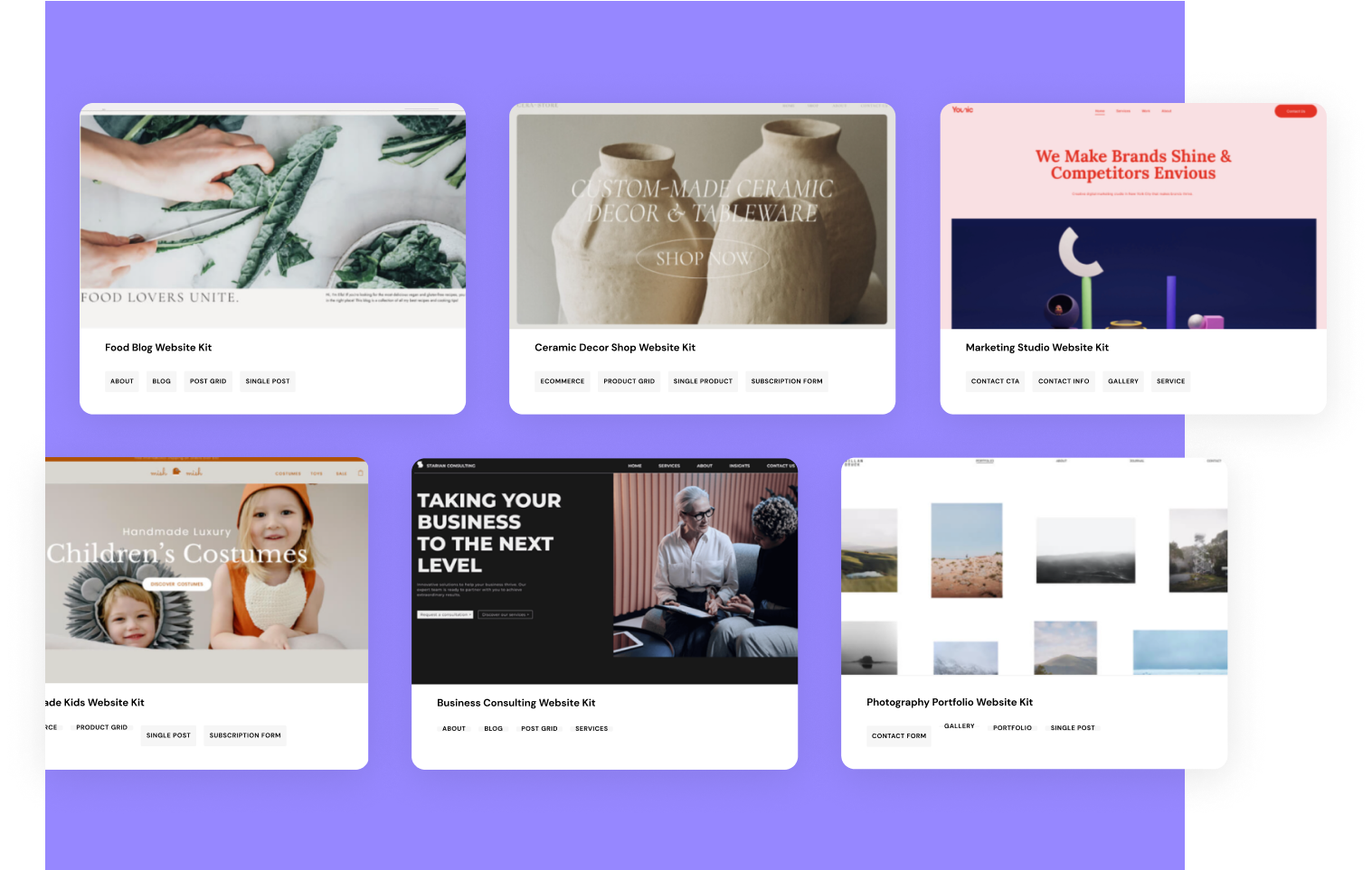 Use the Portfolio widget, Stripe/PayPal widgets, Testimonials, and more to promote your offerings.