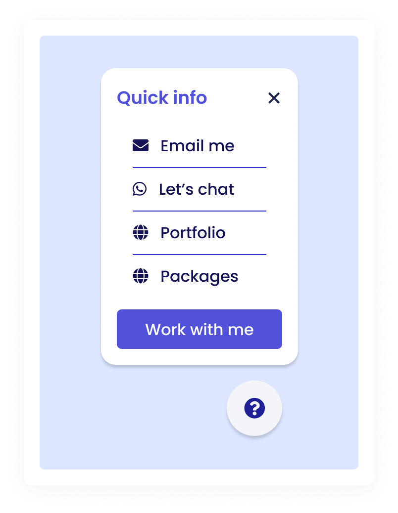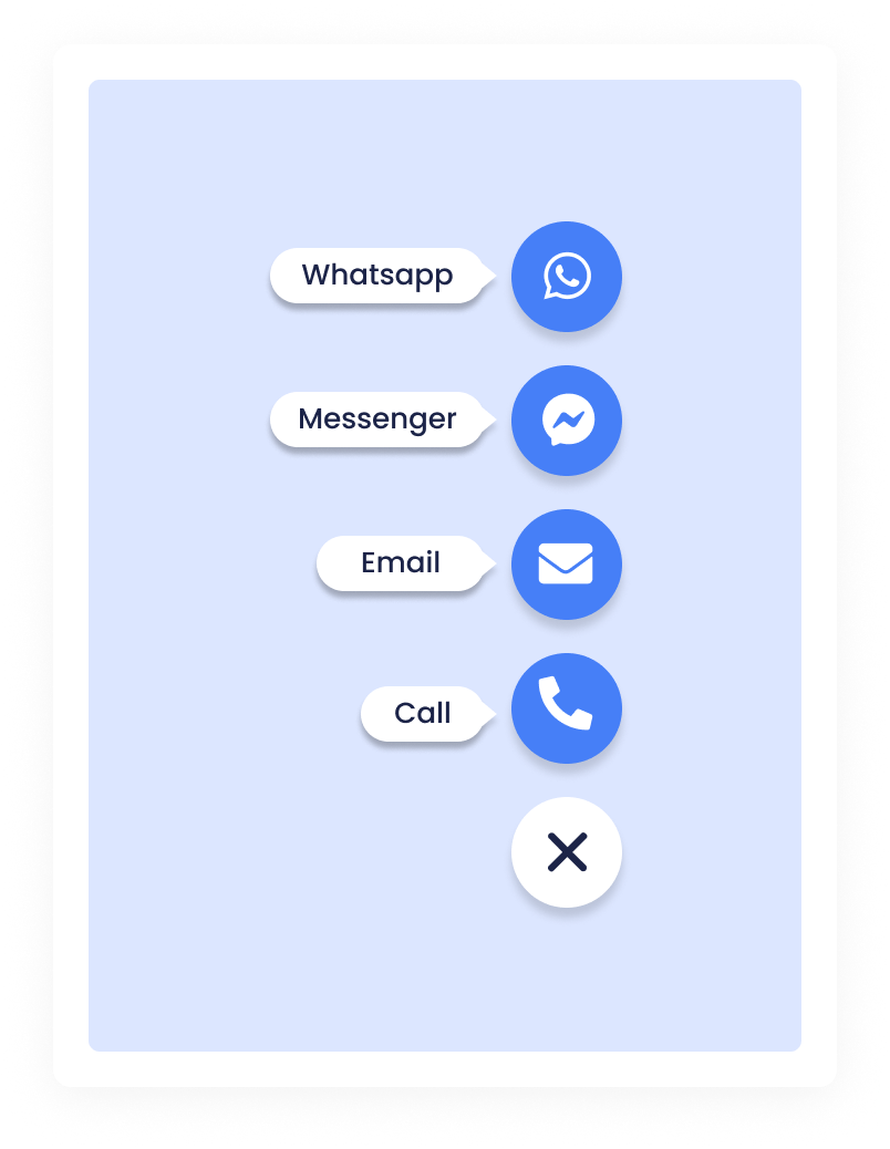 Build Floating Contact Buttons with ease and enable visitors to instantly contact you via chat apps or interact with you in different ways.