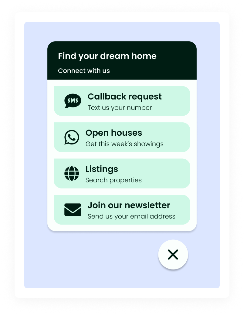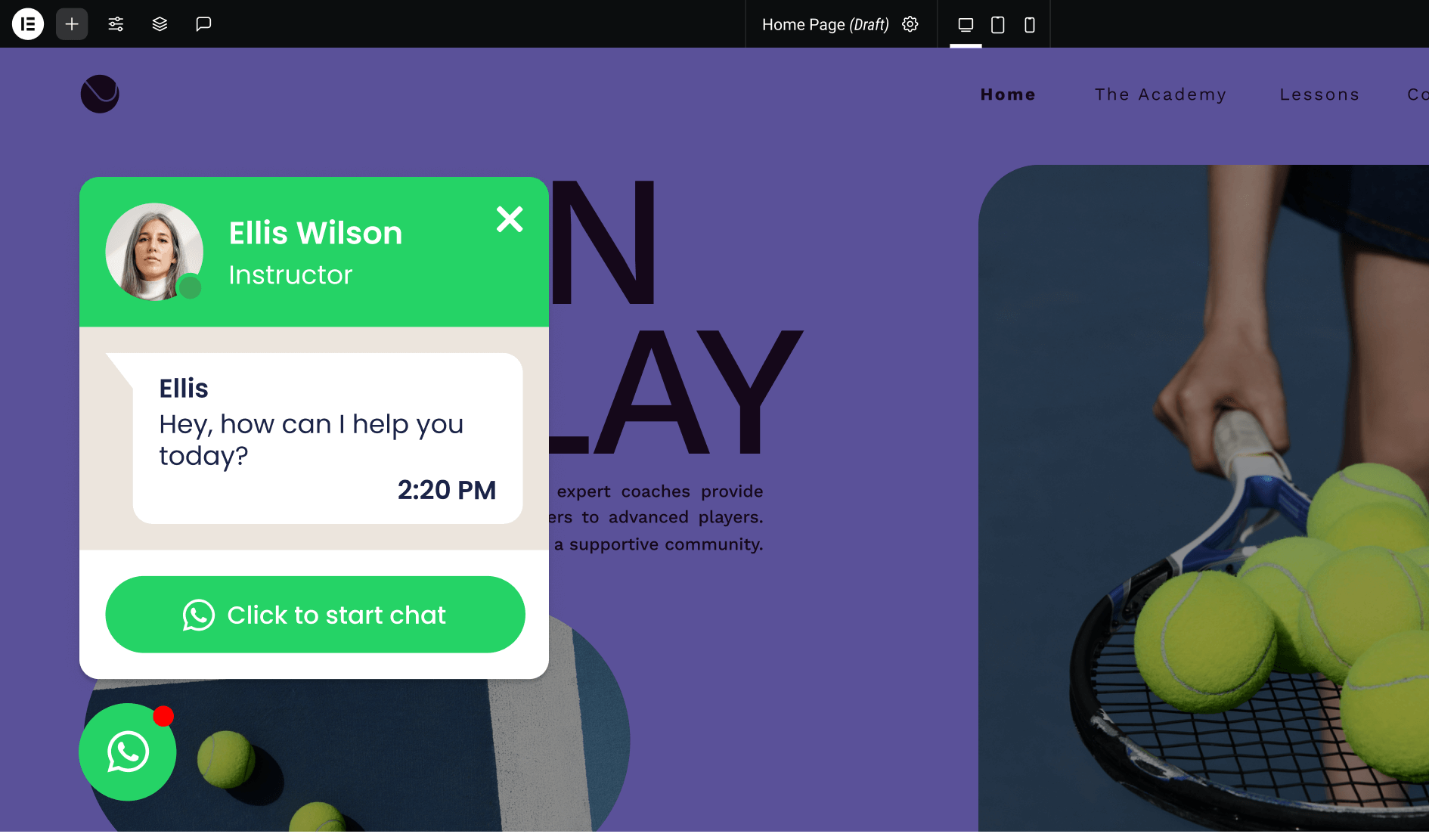 Add a sticky Contact Button with a direct link to a messaging app or connect to another platform. Let visitors initiate a WhatsApp chat to trigger a conversation, access different links, or open an info button with important details, and so much more.