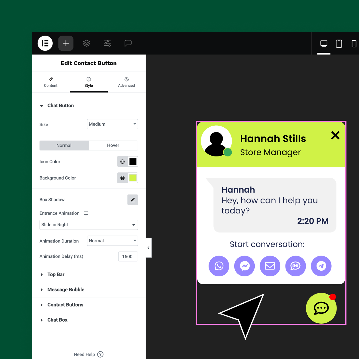 Customize Floating Contact Buttons to fit your brand, and display them on any or all your website pages.
