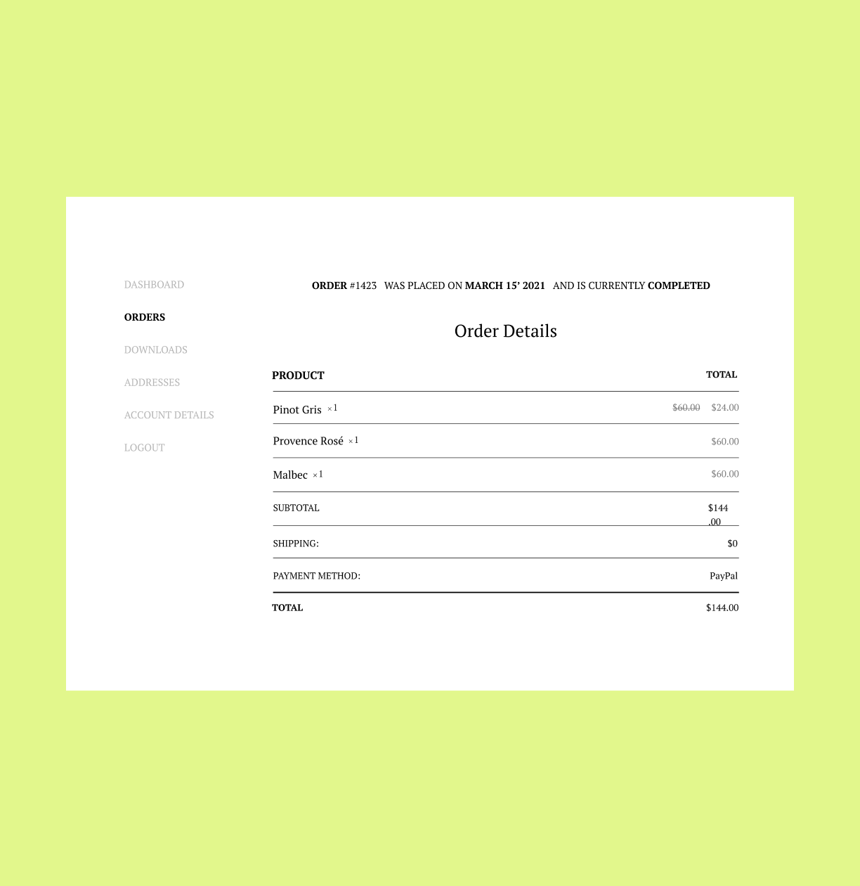 Match the look and feel of your website to your transactional pages for a cohesive look and experience throughout. Including your Checkout page, Purchase Summary, My Account, and more.