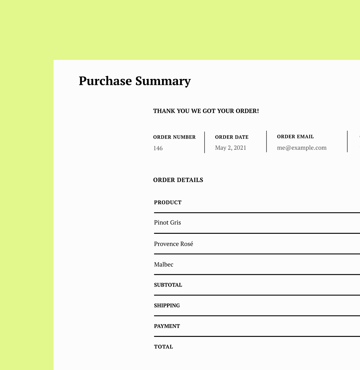 Purchase Summary
