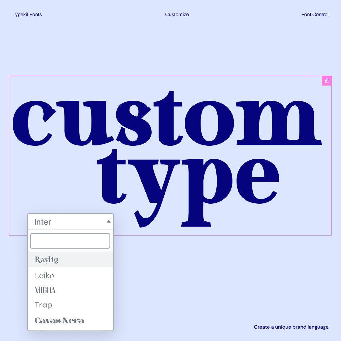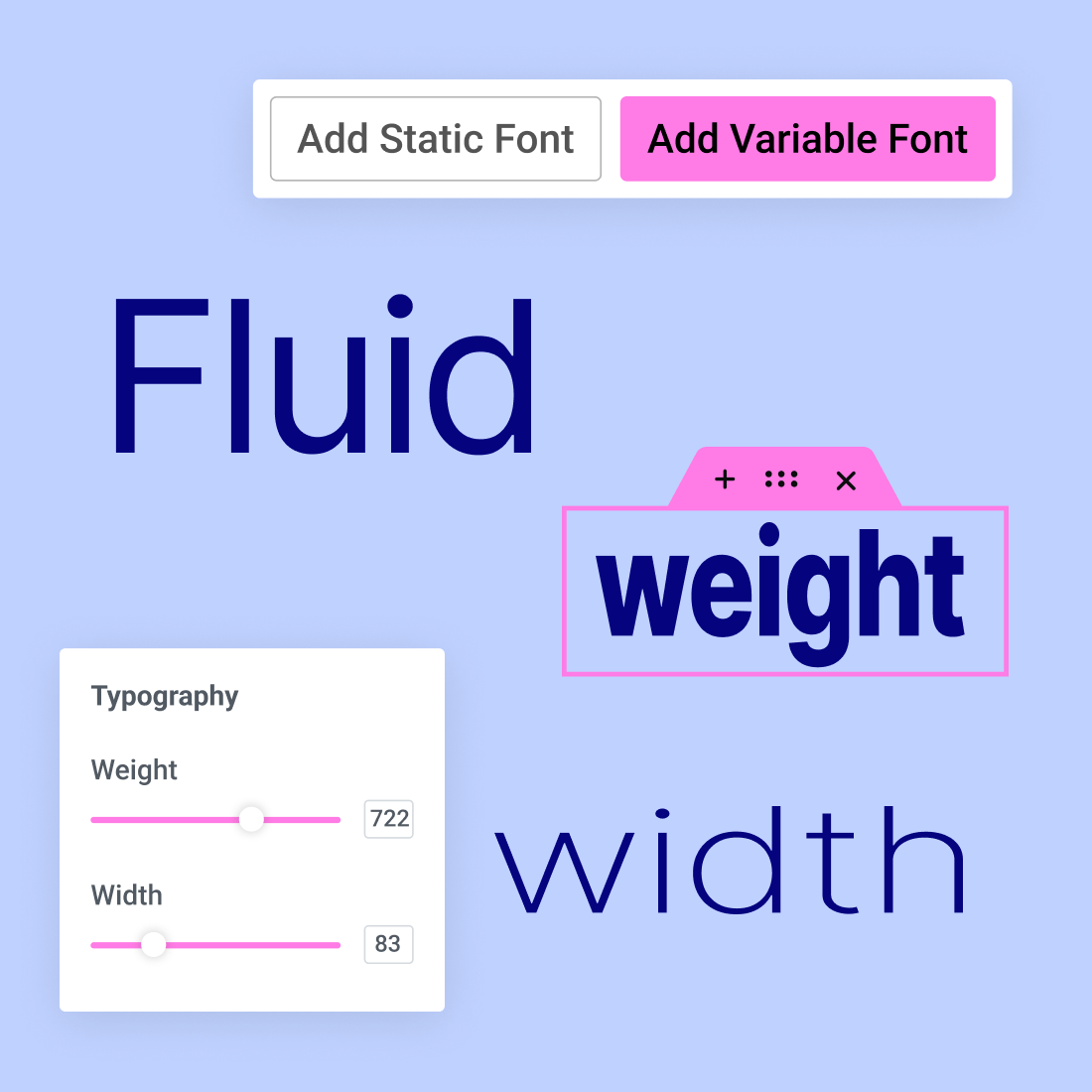 Bringing unparalleled flexibility to text design by controlling text width and weight in single increments with dedicated sliders.