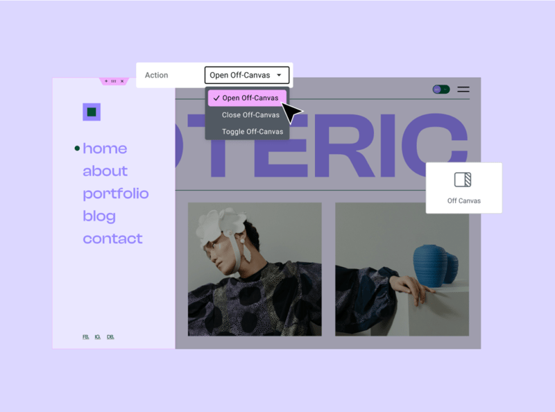 Create interactive layouts by triggering opening and closing of a container from a link, allowing it to slide into view anywhere on your page.