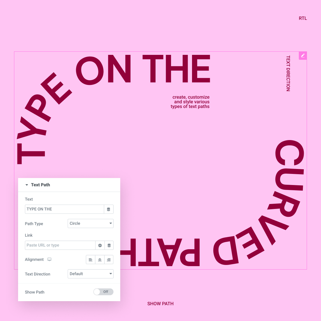 Design unique text paths with built-in shapes like Wave, Arc, Oval, Circle, or Spiral, or upload custom shapes for full design control.